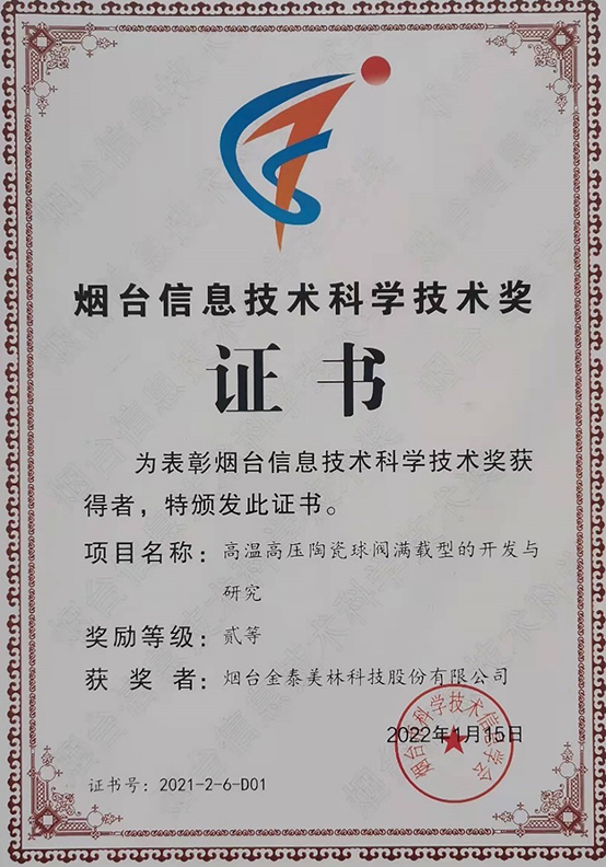 优秀的产品首先来自严谨的科研工作,正如李平董事长在元旦同乐会新年致辞中讲到的《荀子·劝学》里的名言,“不积跬步无以至千里,不积小流无以成江海”的道理,金泰美林也是这样一点一点成长起来的,如今正以燎原之势,蓄势待发。金泰美林的研发人员,积极开拓、勇于担当,新产品的研发的背后是他们努力的汗水和巧妙的智慧结晶。这也让他们斩获了一个又一个的奖项,“面向苛刻工况陶瓷球阀关键技术的研发与应用 ”项目,荣获山东省2021科技进步奖三等奖。“高温高压陶瓷球阀满载型的开发与研究”荣获烟台市科技局、科协联合颁发的烟台市科学技术二等奖。
