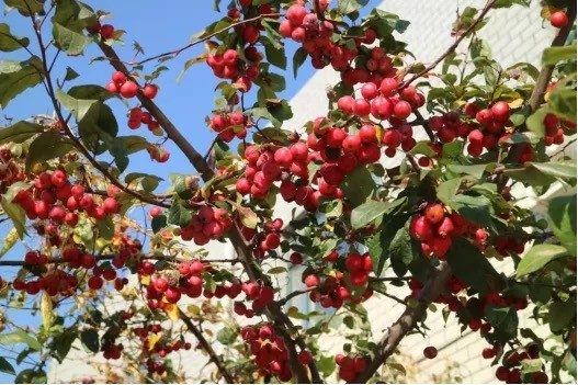 迎着凛冽的寒风,看那冰雪过后依然还挂在树枝上红红的海棠果。晶莹玲珑的海棠在树枝上拥挤的排着不规则的队形,一串串的挂满枝条,压弯了条条树枝,甚是好看,让人喜爱。我站在树下,伸手摘下一颗红的有些发亮的海棠果欣赏着,然后放在嘴里,好酸呀,酸的我口水直流......