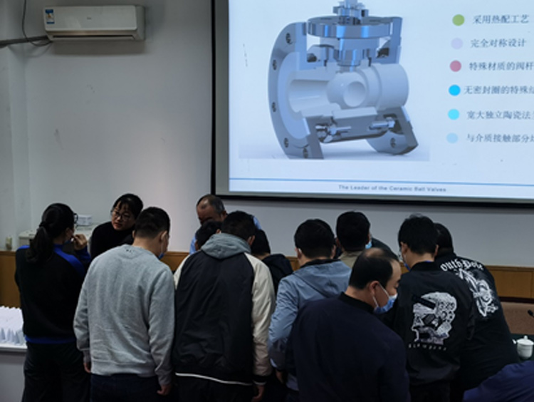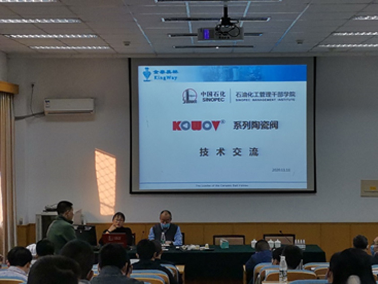 2020年11月11日,我公司总经理携市场部人员,应中国石化下属石油化工管理干部学院的邀请,向在学院集中培训的中青年干部进行陶瓷阀门产品培训。作为世界陶瓷阀门的旗舰企业,金总首先向中石化相关领导表示感谢。