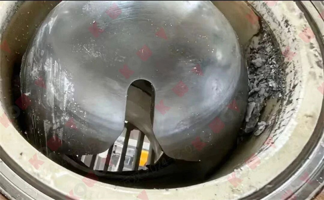 由于我司阀门在废气废液处理工段的优良表现,当渣浆工段阀门出现卡涩卡顿甚至开关不动的问题时,现场专工联系我司,希望我们能够帮助他们解决现场问题。经过对现场工艺的了解,我司技术人员建议客户选用KOWOV陶瓷C阀。无独有偶,还是因为价格原因,客户选择了另一品牌的陶瓷球阀。然而该品牌厂家低价中标后,却擅自将客户在招标要求中明确标注的陶瓷球芯更换成了金属球芯。该阀门上线后,因介质中细小硅粉的长期冲刷,球芯磨损严重,阀门快速失效。