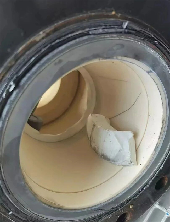具体而言,这些低价阀门在投入使用后一个月,便因阀门的结构不合理、阀体内衬陶瓷材料质量欠佳且厚度不够、密封件材质不够理想等一系列原因,出现了阀体冲刷穿孔、阀门外漏等不同情况。在2024年5月前,5台阀门陆续下线。这不仅严重影响了生产线的稳定运行,增加了不必要的停机检修次数,还大幅提升了长期的维护成本,更重要的是,对装置的安全运行构成了潜在威胁。