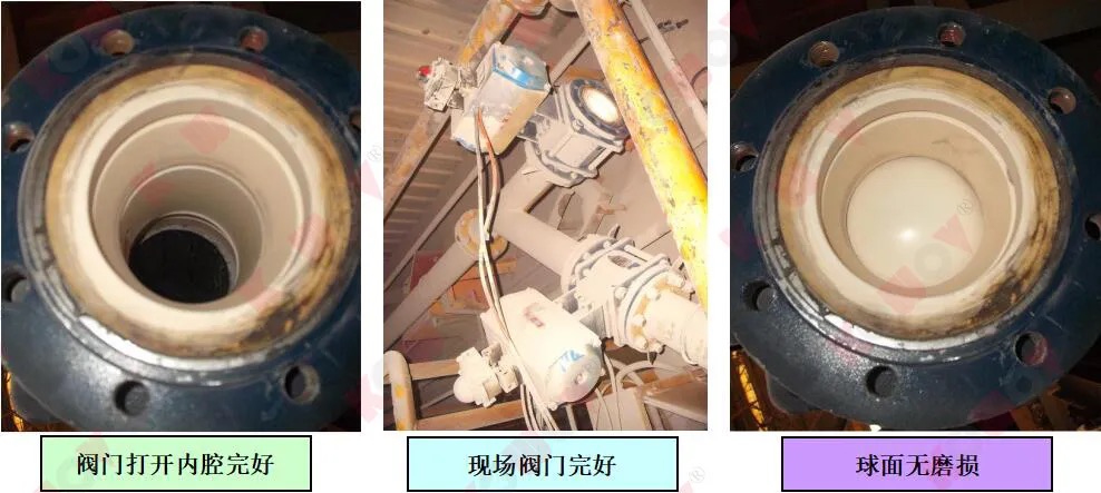 阀门金属外壳没有问题,阀门内部接触介质的陶瓷件,陶瓷球芯、陶瓷阀座、陶瓷法兰内衬等部件均完好无损,由此得出,此批次阀门非常适合现场工况,照此使用情况最少能使用4年不会有问题。